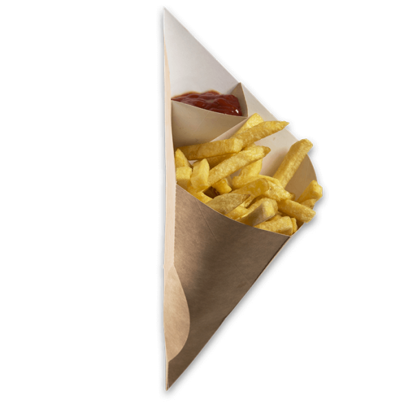 De Chip ‘n Dip frietzak met sausvak is een innovatieve oplossing gericht op de Horeca. In de horeca is snelheid belangrijk. Deze frietzak zet je op in een fractie van een seconde. Je vult de frietzak met friet en vult de saus apart in het vakje. De duurzame FSC® karton geeft een duurzame uitstraling.