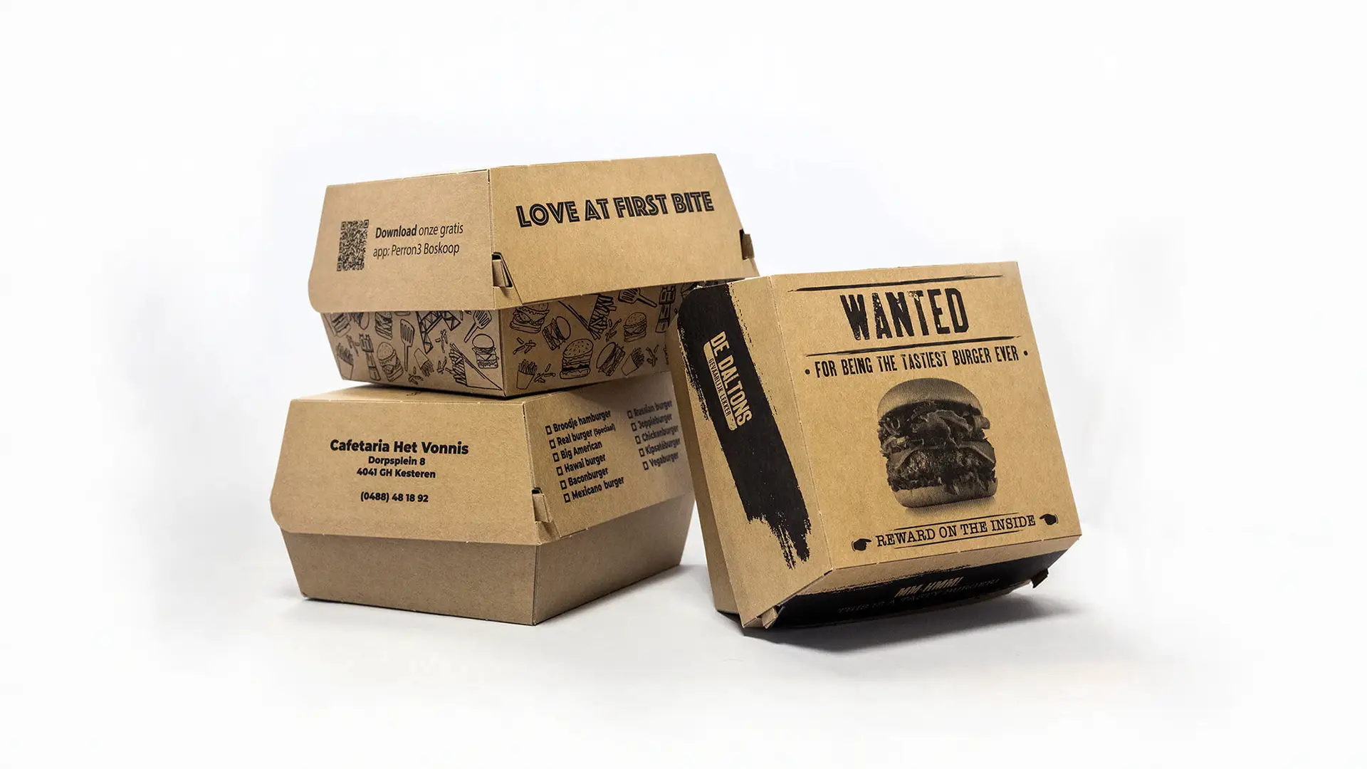 Zo ontstaat een op maat hamburgerdoosje dat zowel praktisch als onderscheidend is.