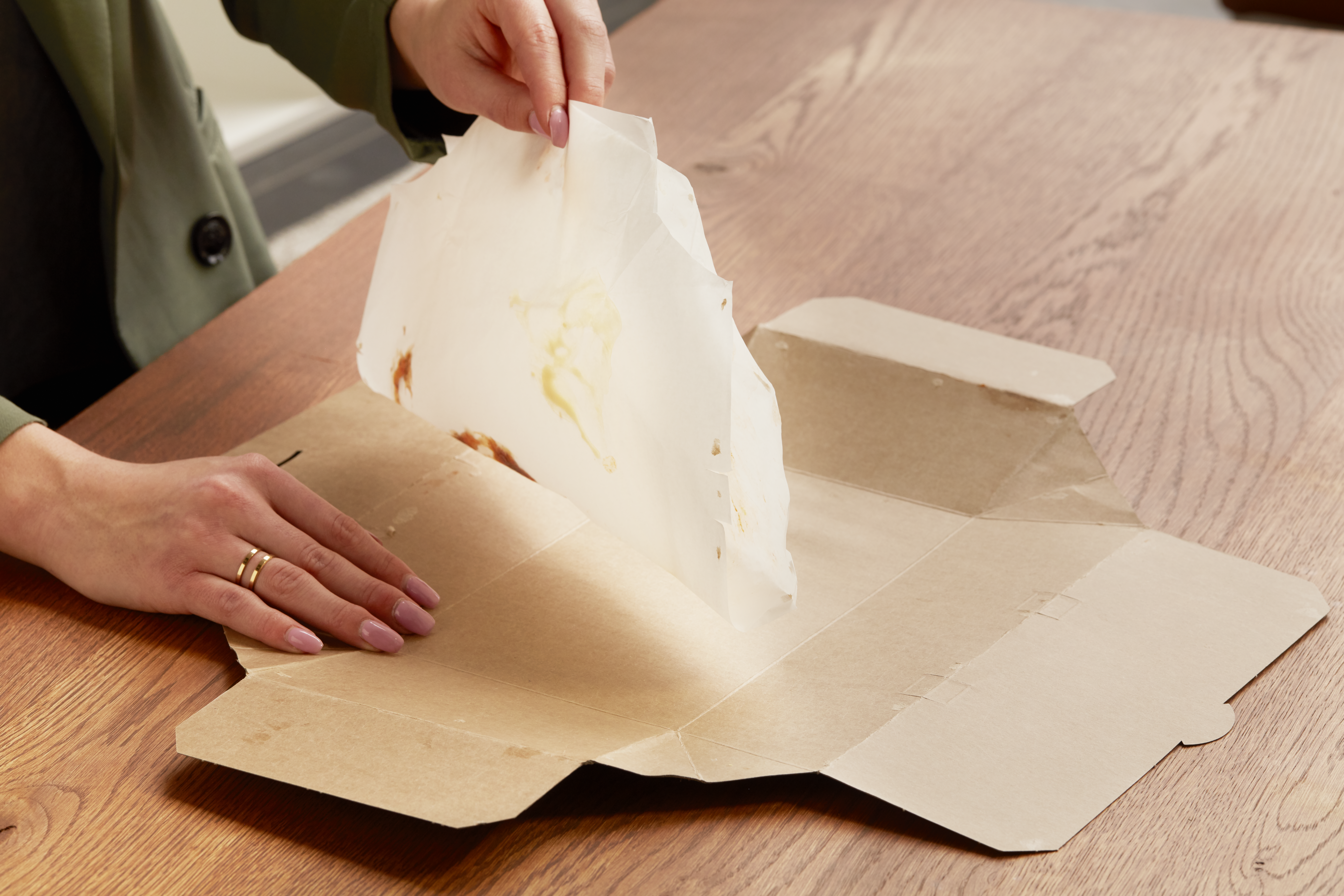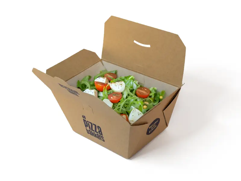 - Gerechten blijven langer warm door het isolerend effect van de ruimte tussen het papier en karton